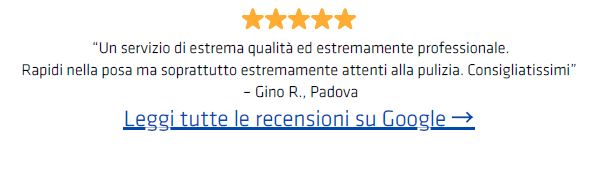 “Un servizio di estrema qualità ed estremamente professionale. Rapidi nella posa ma soprattutto estremamente attenti alla pulizia. Consigliatissimi.”